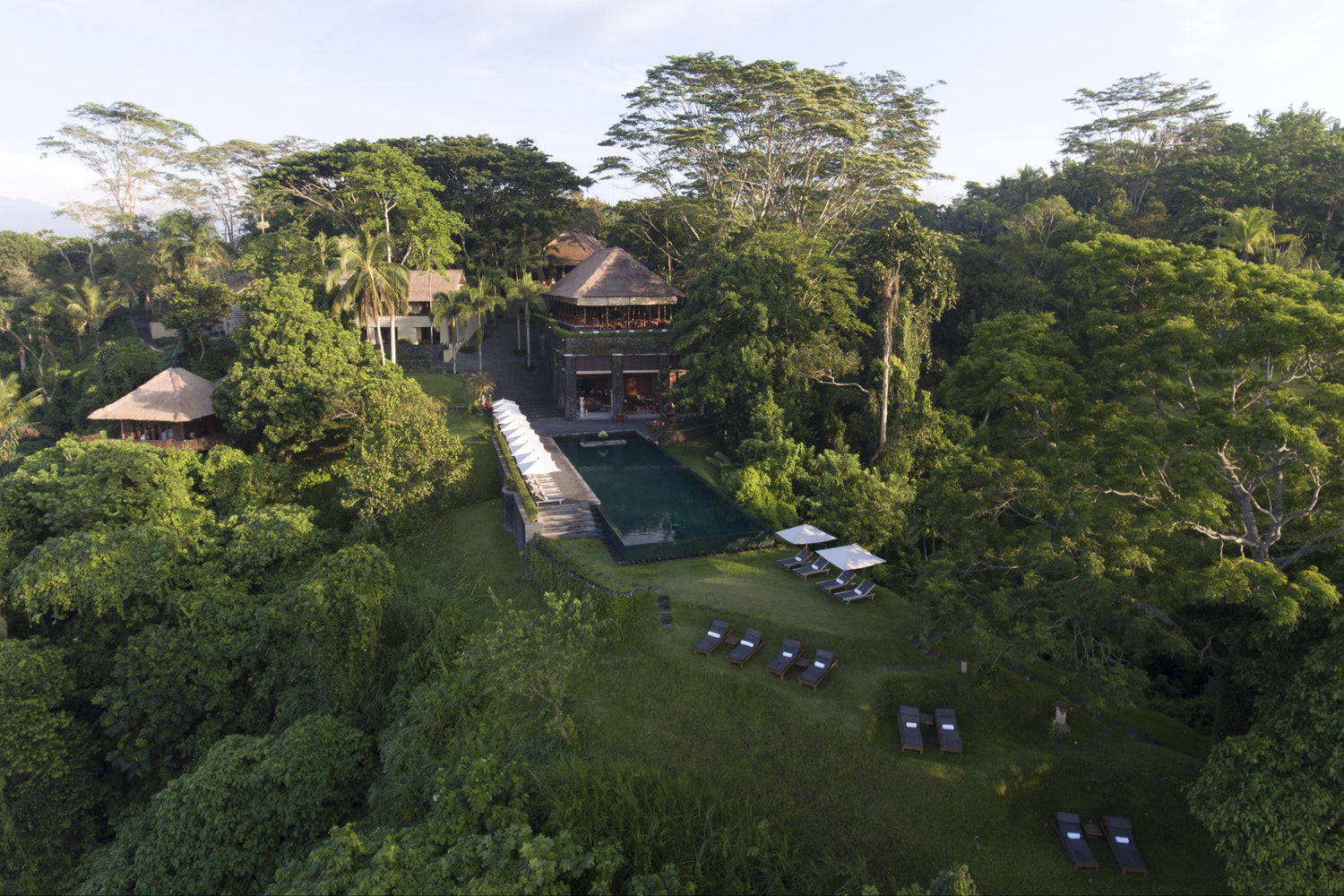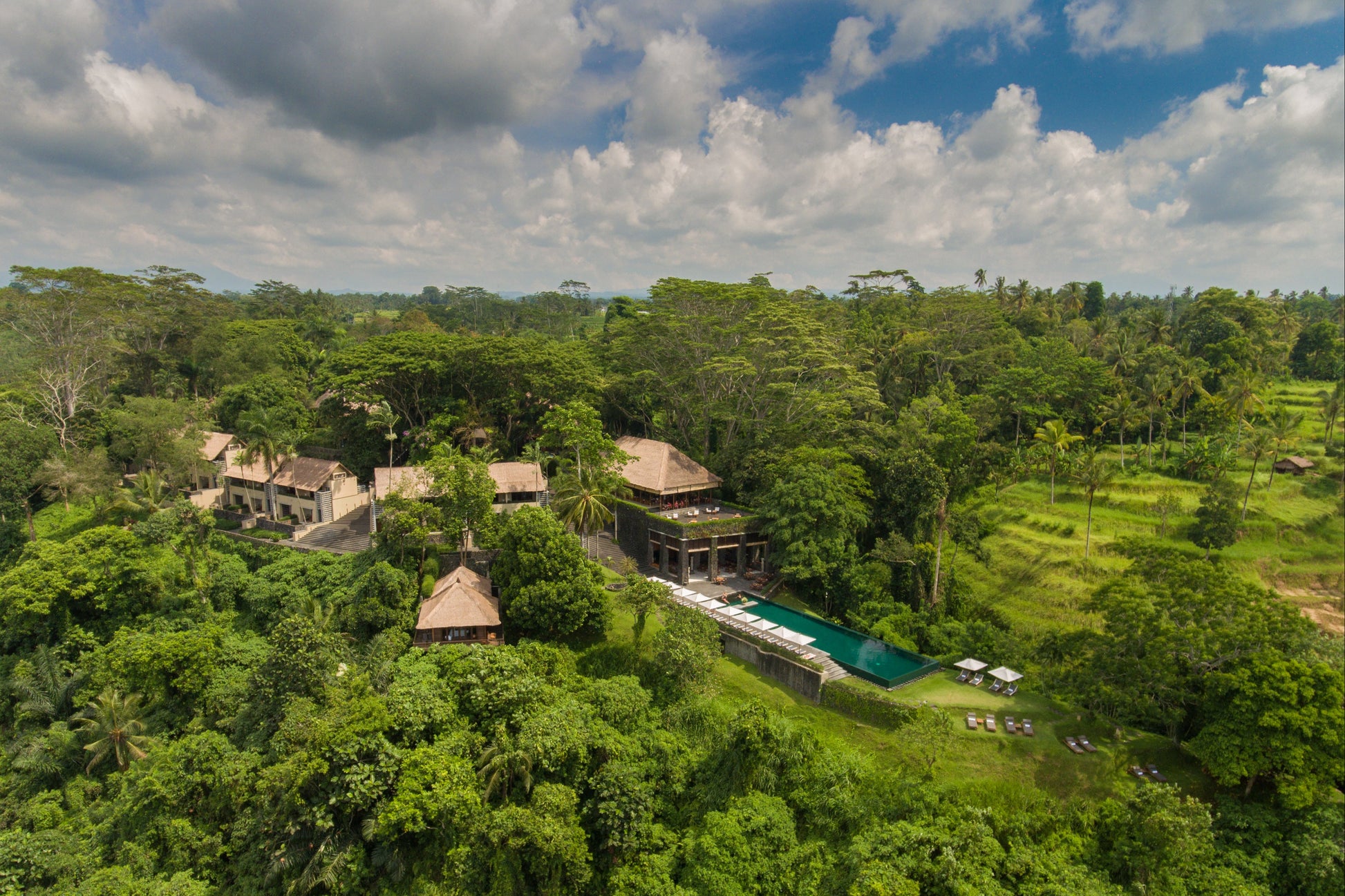 - Designed with a blend of contemporary architecture and Balinese tradition, the rooms and villas at Alila Ubud are crafted to maximize the connection with nature. Each accommodation features a spacious balcony or private terrace, offering stunning views of the forest and valley. A highlight of the resort is its iconic infinity pool, which appears to float above the lush jungle and has been recognized as one of the most beautiful pools in the world.