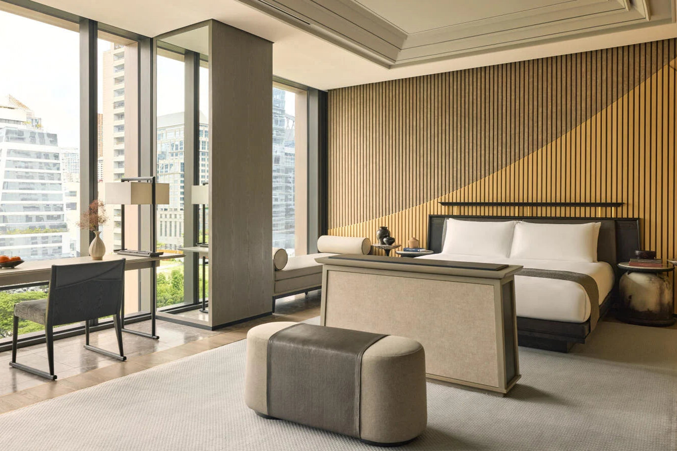 - The hotel’s design blends modern luxury with traditional Thai elements, creating an elegant and stylish atmosphere. The rooms and suites feature open, airy spaces, adorned with luxurious finishes and artistic touches that reflect Thailand's rich cultural heritage. From the sleek, contemporary decor to the artfully crafted details in wood, textiles, and local artistry, the design strikes a perfect balance between modern sophistication and timeless Thai elegance.