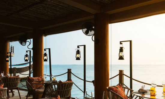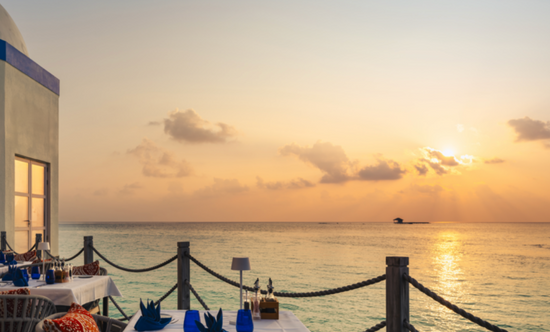 The dhoni boat-shaped bar is the perfect place to enjoy champagne and cocktails while watching the sunset. You can also experience the unique art of opening champagne with a sword (sabrage).